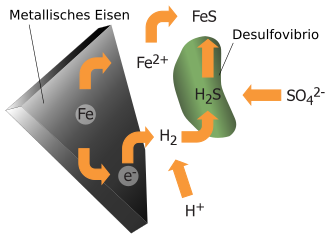 Anaerobe Bakterien, deren archaischer Stoffwechsel Eisen und Schwefel einbezieht, existieren noch heute – Stoffwechselprodukt: Eisensulfid.