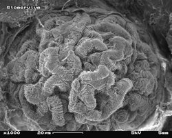 Glomerulus im REM. Bildbreite 23 µm. -