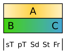 A und C unterdrücken sich gegenseitig, sodass es zu keiner Überschneidung kommt. Bei Abwesenheit des einen wird die andere Klasse in der gesamten Blüte ausgebildet. Das ABC-Modell wurde 1991 von E. Coen und E. Meyerowitz[14] aufgestellt, wurde inzwischen vielfach bestätigt und erweitert.