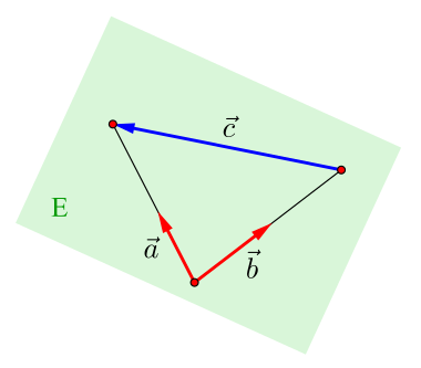 Komplanarität (auch Koplanarität oder Coplanarität) ist ein Begriff aus der Analytischen Geometrie, einem Teilgebiet der Mathematik. Drei verschiedene Punkte, die nicht auf einer gemeinsamen Geraden liegen, erzeugen eindeutig eine Ebene, in der sie liegen. Mehr als drei Punkte heißen komplanar, wenn sie in einer gemeinsamen Ebene liegen.[1] Entsprechend gelten drei Vektoren als komplanar, wenn sie linear abhängig sind. Einer der drei Vektoren lässt sich dann als Linearkombination der beiden anderen Vektoren darstellen; komplanare Vektoren liegen in derselben Ebene.[2] Das Adjektiv „komplanar“ kann vom lateinischen „complanere“ (einebnen) abgeleitet werden.