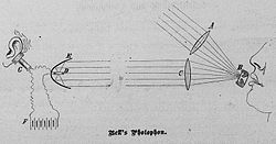 Im Jahr 1873 stellte Willoughby Smith fest, dass der elektrische Widerstand von grauem Selen von der Belichtung abhängt.[12] Dies erlaubt die Verwendung von Selen in Photozellen. Die ersten kommerziellen selenhaltigen Photozellen entwickelte Mitte der 1870er Jahre Werner von Siemens, deren Leitfähigkeit im Sonnenlicht um den Faktor 14,8 höher war als ohne Beleuchtung.[13] Alexander Graham Bell entwickelte 1878 das sogenannte Photophon. Dabei wurde Licht auf einen Spiegel geleitet, der durch ein Megaphon zum Vibrieren gebracht wurde. Die Vibrationen des Megaphons wurden über den Spiegel übertragen, das Licht wurde an ein Empfängersystem geschickt, das aus einem Photoelement, einer Batterie und einem Telefon bestand. Obwohl es sich um das erste drahtlose Telefonsystem handelte, erlangte das System keine Bedeutung.[14]