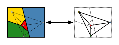 Durch das Hinzufügen der Kanten wird die Komplexität der Färbung somit erhöht. Ist diese Triangulierung vierfärbbar, so ist es auch der zugrunde liegende Graph. Somit gehen wir ohne Beschränkung der Allgemeinheit davon aus, dass der zu färbende Graph