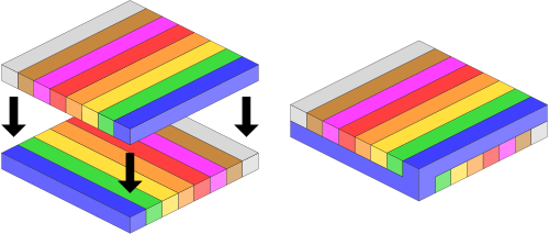 „lange“ kongruente Quader („Riegel“) nebeneinanderliegend, die zusammen