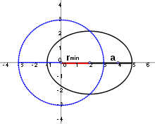 - der minimale Abstand errechnet sich aus großer Halbachse minus linearer