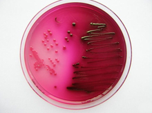 Escherichia coli (abgekürzt E. coli) – auch Kolibakterium (lateinisch Bacterium coli) genannt – ist ein gramnegatives, säurebildendes und peritrich begeißeltes Bakterium, das normalerweise im menschlichen und tierischen Darm vorkommt. Unter anderem auf Grund dessen gilt dieses Bakterium auch als Fäkalindikator. E. coli und andere fakultativ anaerobe Organismen machen etwa 1 ‰ der Darmflora aus.