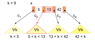 stellt demnach eine Grenze dar, dessen linksseitiger Verweis auf kleinere Werte und dessen rechtsseitig angeordneter Verweis auf größere Werte verweist. In einem Unterbaum