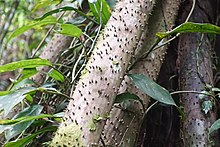 Bei bestimmten Palmen sind die Enden einiger Luftwurzeln zu Wurzeldornen als Schutz der Stammbasis umgebildet.