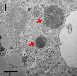 - ↑ Shengzhong Xu, Liang Zhou, Xiaosha Liang, Yifan Zhou, Hao Chen, Shuling Yan, Yongjie Wang: Novel Cell-Virus-Virophage Tripartite Infection Systems Discovered in the