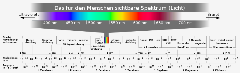 | sichtbares Licht | 3,8 x 1014 bis 7,7 x 1014 | 790 nm bis 390 nm | |