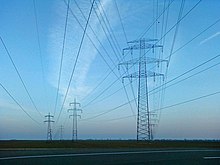 - Höchstspannung: In Westeuropa in der Regel 220 kV oder 380 kV. In Kanada und in den USA werden 735 kV und 765 kV verwendet. In Russland existiert ein ausgedehntes 750-kV-Netz, von dem einzelne Leitungen auch nach Polen, Ungarn, Rumänien und Bulgarien führen. Eine 1150-kV-Leitung führt vom Kraftwerk Ekibastus (Kasachstan) zur Stadt Elektrostal (Russland). Sie wird heute jedoch nur noch mit 500 kV betrieben.