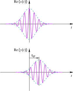 Damit ist die Einhüllende der Gruppe genau um eine Gruppenlaufzeit nach Passieren des Systems verzögert.