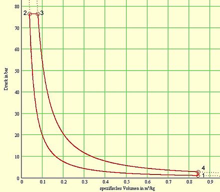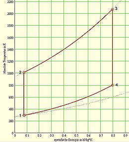 - isobare Wärmezufuhr (2 → 3) (deshalb Gleichdruckprozess!)