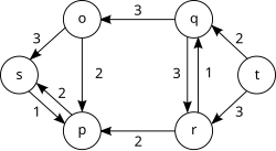 {\displaystyle S_{2}=\{s,o,p\},T=\{q,r,t\}}   {\displaystyle c(o,q)+c(p,r)=3+2=5}