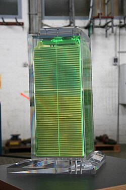 - Sandwich-Kalorimeter, bestehend aus abwechselnden Lagen von Szintillatoren und Absorbermaterialien (z. B. im ZEUS-Kalorimeter an HERA am DESY).[8]