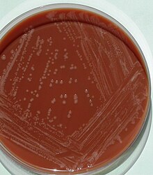 Statt Schafblut kann auch Pferdeblut verwendet werden, das so erhaltene Nährmedium wird z. B. als Columbia-Agar mit 5 % Pferdeblut (englisch: Columbia agar with 5 % horse blood oder einfach nur Columbia horse blood agar) bezeichnet.[9] Columbia-Blutagar wird in den mikrobiologisch-infektiologischen Qualitätsstandards (MiQ) der Deutschen Gesellschaft für Hygiene und Mikrobiologie (DGHM) als Nährmedium zur Erstisolierung bei zahlreichen klinischen Proben empfohlen.[10] Die mit dem Probematerial beimpften Nährmedien werden anschließend bei einer Temperatur von 35 ± 2 °C in einer mit Kohlenstoffdioxid (CO2) angereicherten aeroben Atmosphäre inkubiert.[7]