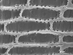 Querschnitt eines Bohnenblattes im Rasterelektronenmikroskop. Fachbereich Biologie,