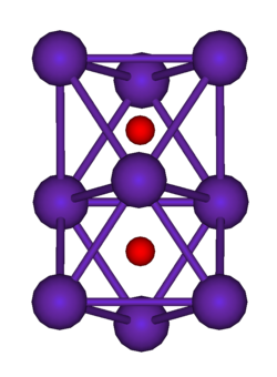 Caesium bildet ebenfalls eine Anzahl Suboxide. Das wichtigste Caesium-Suboxid besitzt die Formel Cs11O3. Es ist ein violetter Feststoff mit einem Schmelzpunkt von 52,5 °C.[1] Die Struktur besteht wie beim Rubidium aus flächenverknüpften Oktaedern, in deren Mitte sich die Sauerstoffatome befinden. Es sind allerdings beim Caesium drei Oktaeder anstatt zwei wie beim Rubidium.